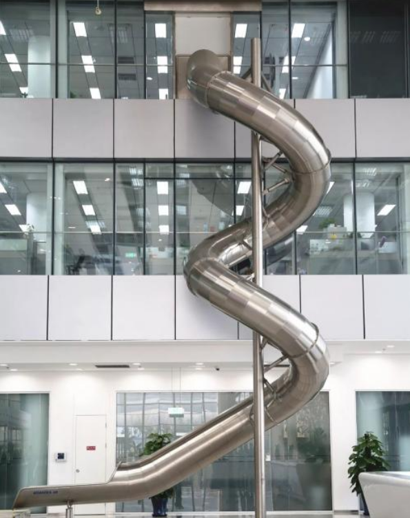 國內(nèi)也有裝上滑梯的樓,它就是百度科技園,位于中關(guān)村軟件園二期內(nèi),滑梯從三樓到一樓,目測長度有二十多米,下班不用坐電梯,這個設(shè)計堪比坐電梯,一溜煙就下來了,太歡樂了,整天的工作煩惱頓時都忘掉了。