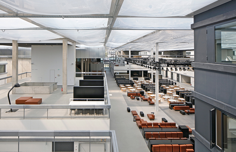隨著地塊高度的增加,辦公室裝修屋頂露臺(tái)和開放的工作空間為學(xué)生提供了開放的內(nèi)中庭景觀。巨大的透明屋頂覆蓋著學(xué)校的公共區(qū)域,辦公室裝修允許日光自由進(jìn)入室內(nèi)城市空間。城市校園由一條對(duì)角線街道相交,延伸了連接大學(xué)與周圍校園的公共路線。