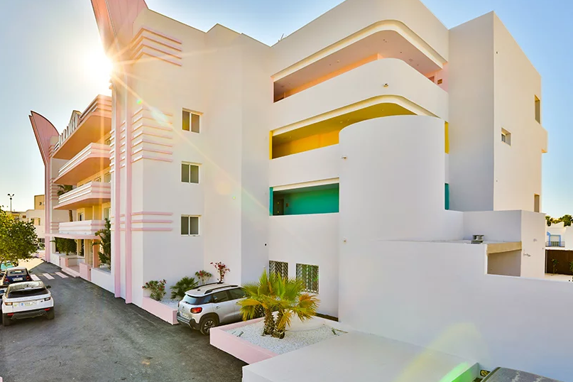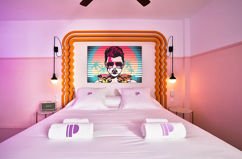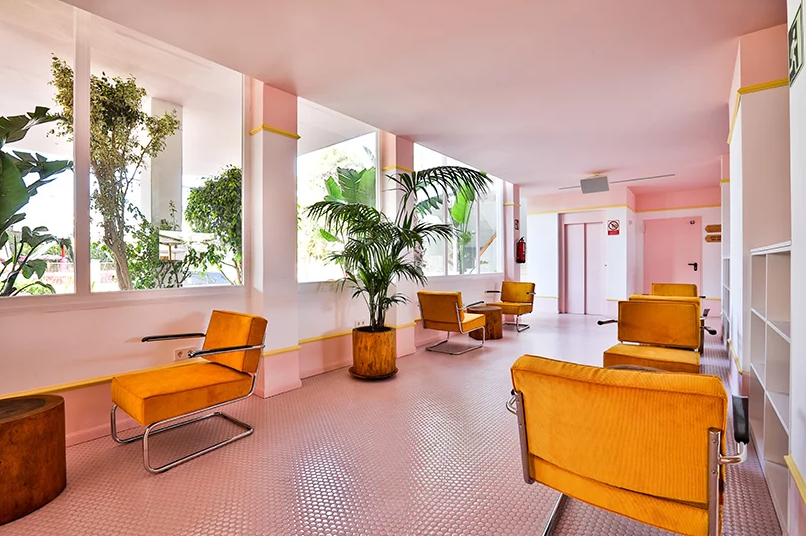 擁有霓虹色的paradiso ibiza藝術酒店位于邁阿密和孟菲斯之間。這是對酒店裝修的一種慶祝,它點綴著20世紀20年代的裝飾藝術風格和20世紀80年代的孟菲斯風格。這個度假勝地被恰如其分地命名為藝術酒店,它試圖通過其色彩設計讓游客沉浸在當代藝術中。